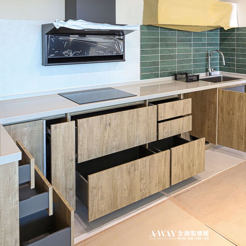 A-WAY鋼製系統生活家居,提供頂級防火防水、抗污、防蟑螂、零甲醛、可磁吸、耐重不變形的系統鋼板,以及多款色票材質豐富,美觀極簡的全鋼製系統廚具,為您帶來不一樣的家居樂趣。